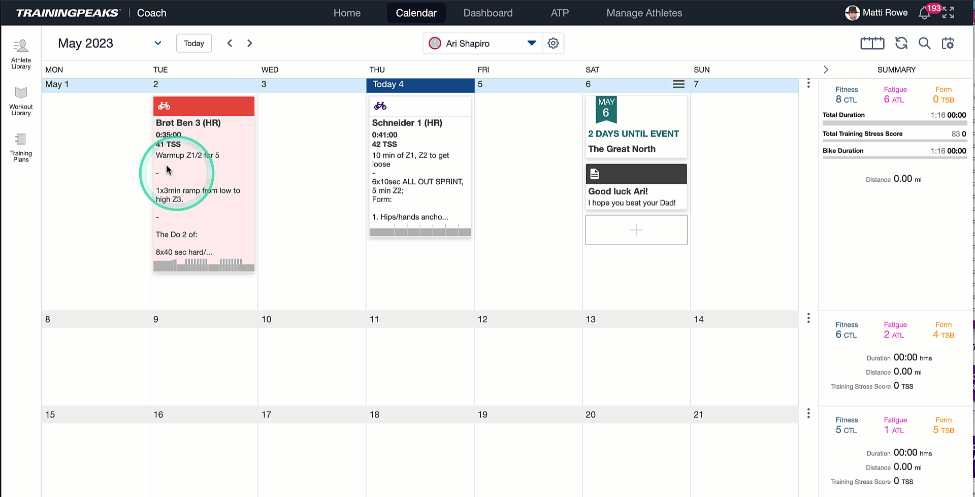 Workouts have always been available in an athlete's Workout Library (Joe Friel's library comes standard with new TrainingPeaks athlete accounts), but we realize these workouts may be distracting for coached athletes.