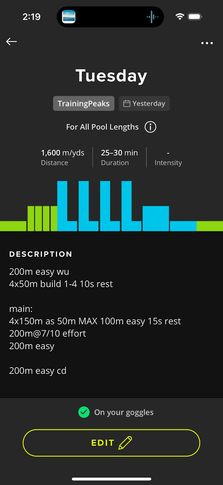 You can export TrainingPeaks structured swim workouts to your form FORM goggles to execute in the pool.