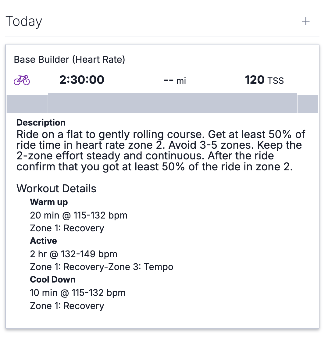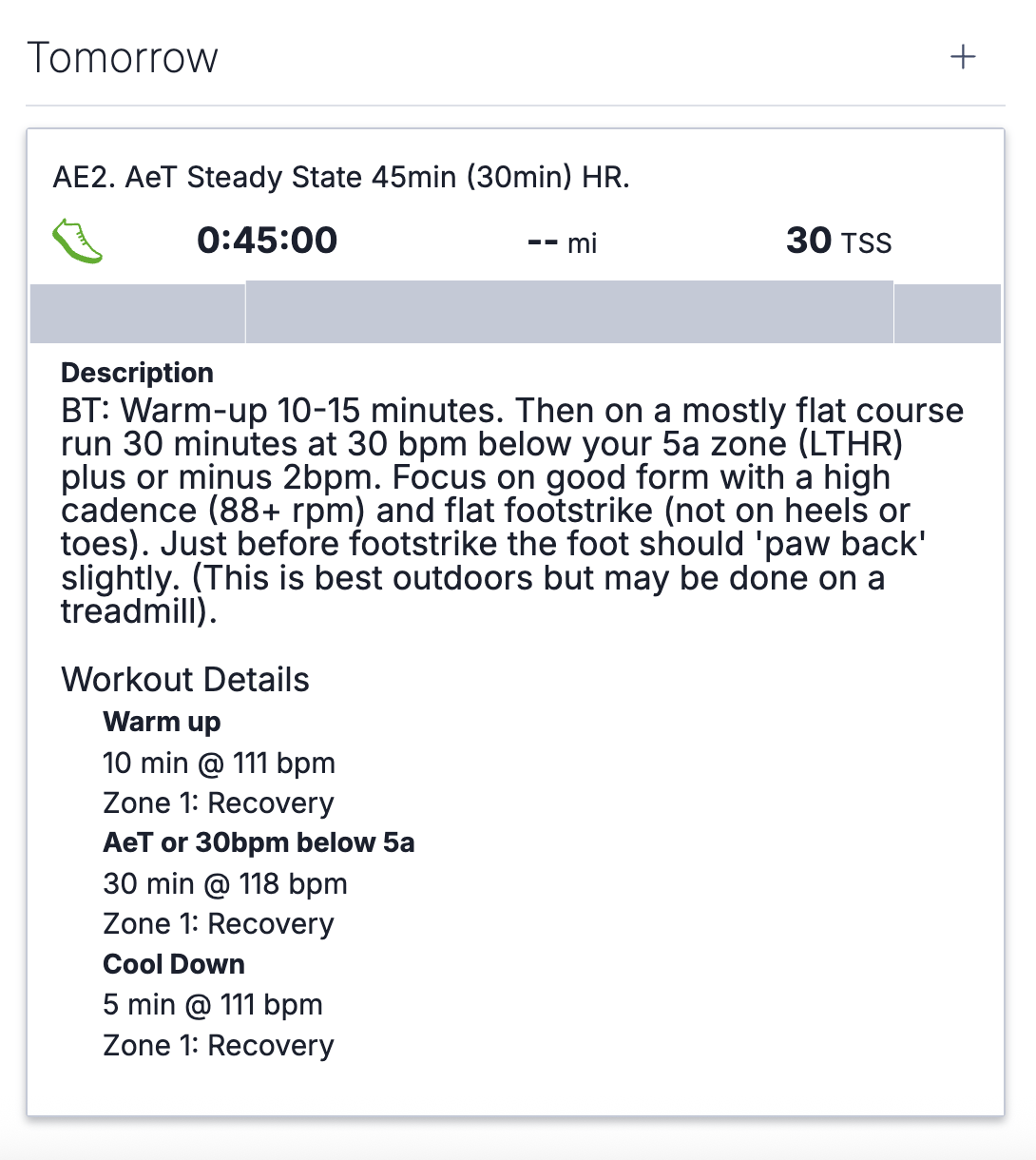 You will also see your workouts for Today, and under Training Zones, you will see your workout for Tomorrow.