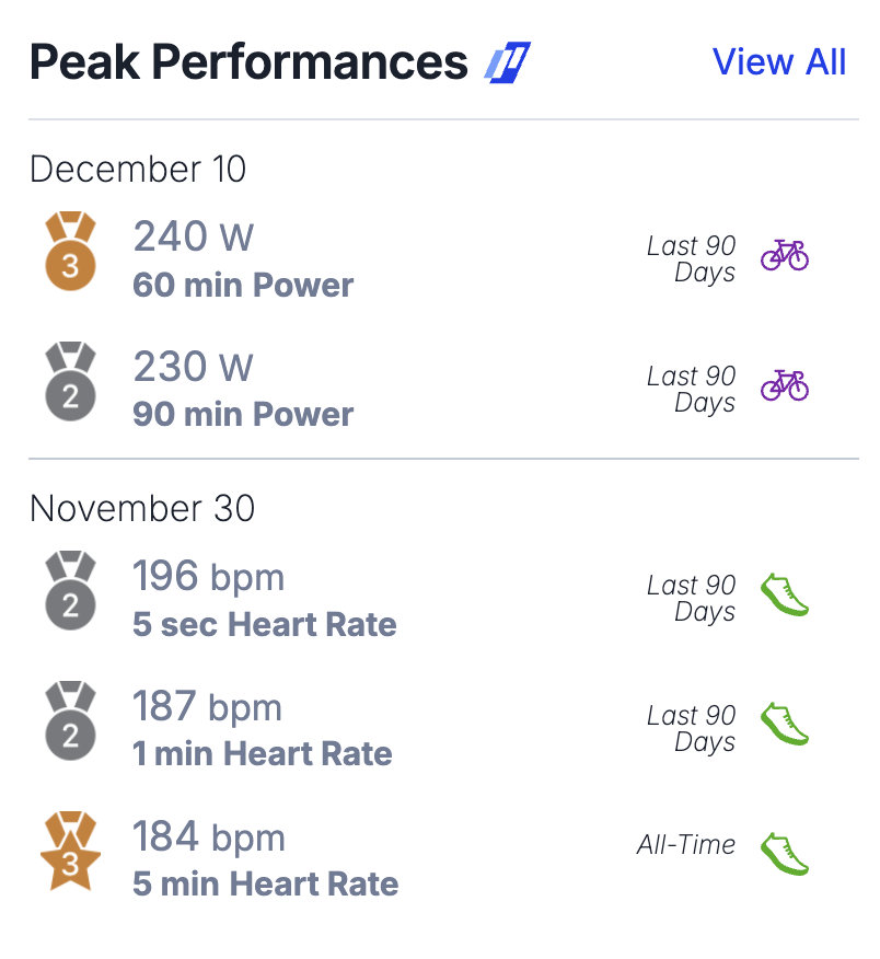 Lastly, you can review your Peak Performances (for Premium Athletes only).