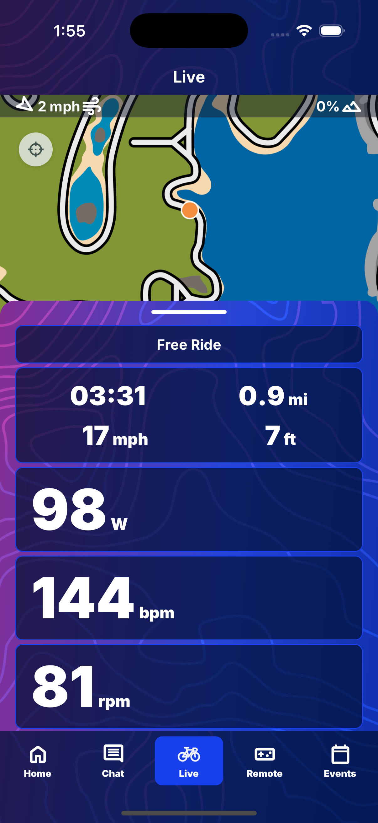 See your current stats quickly in the Hub App. You will see all the data you are outputting in your current ride, simply by tapping Live.