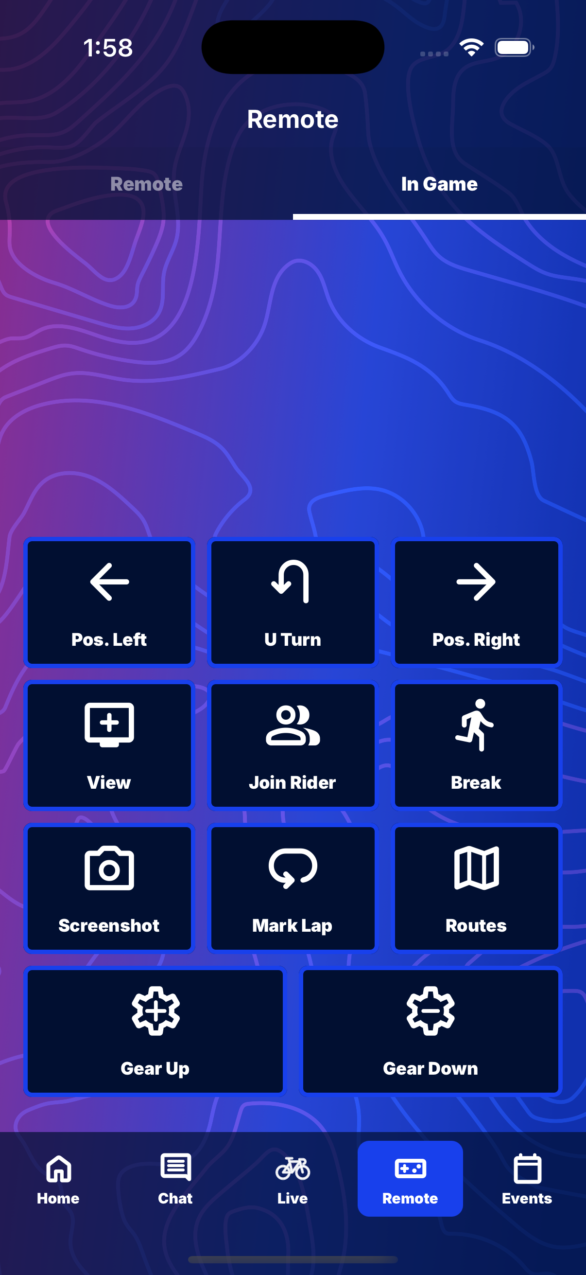 You can now directly control your riding experience from within the Hub App. Not only do you have basic directional functionality using the Remote, but you can also make all the selections you can in the game, using the Hub App. This makes it easy to change directions or your view, select a route, take a break, grab a screenshot, and so much more!