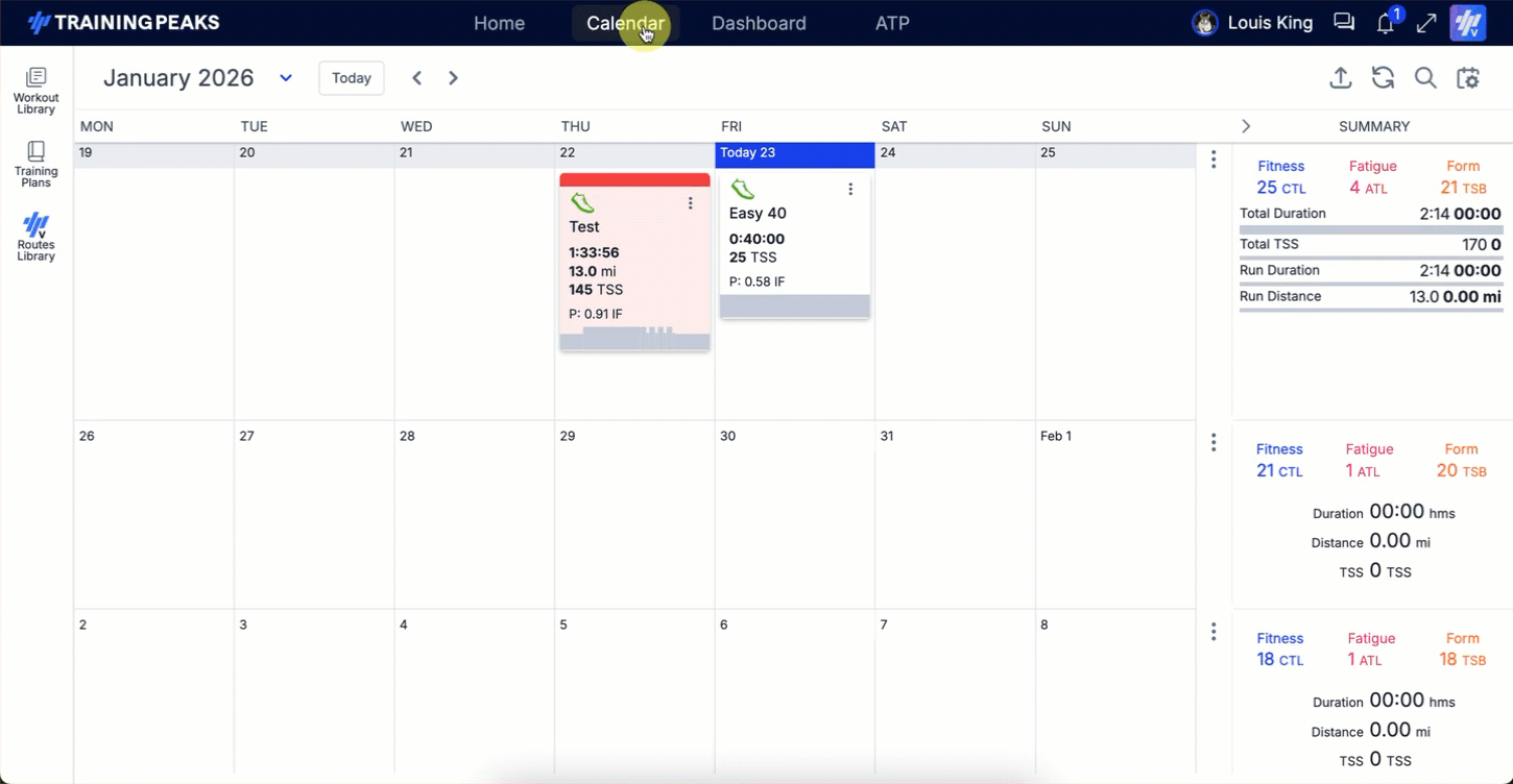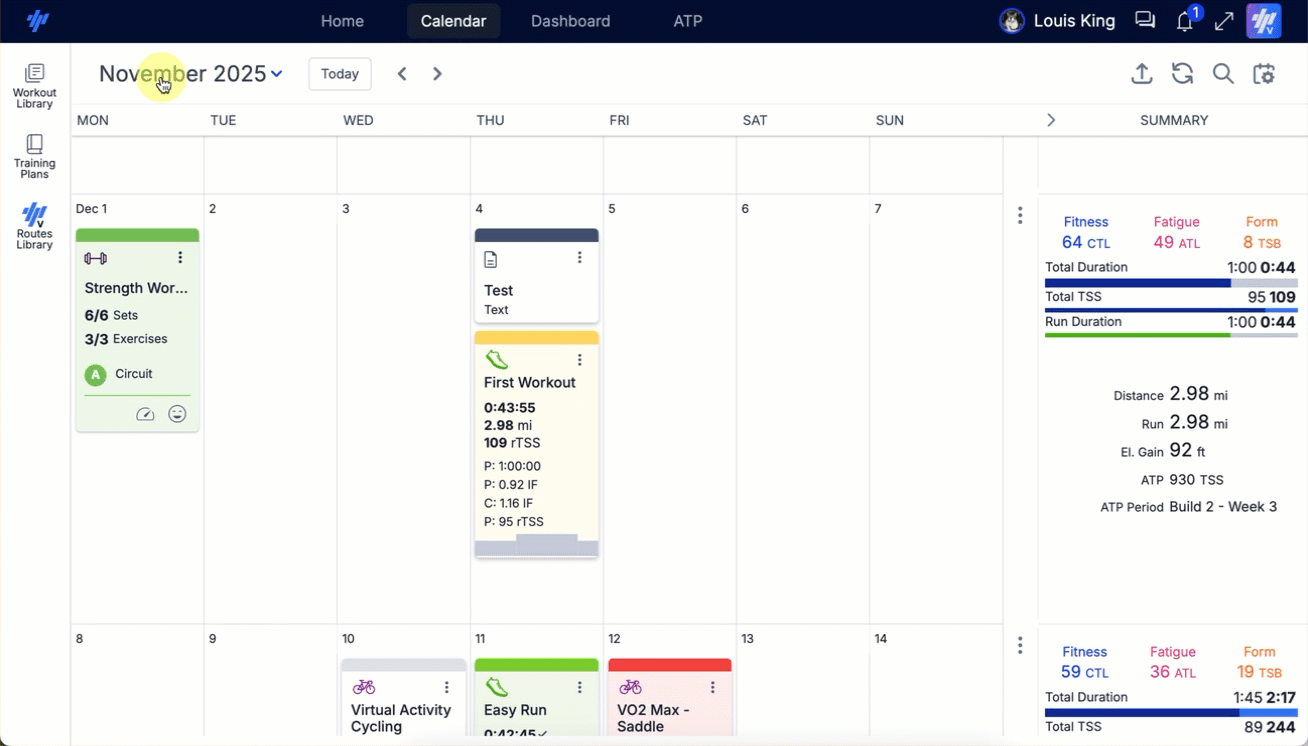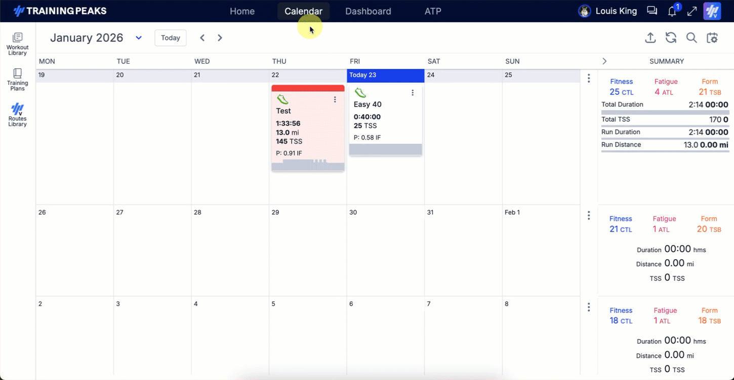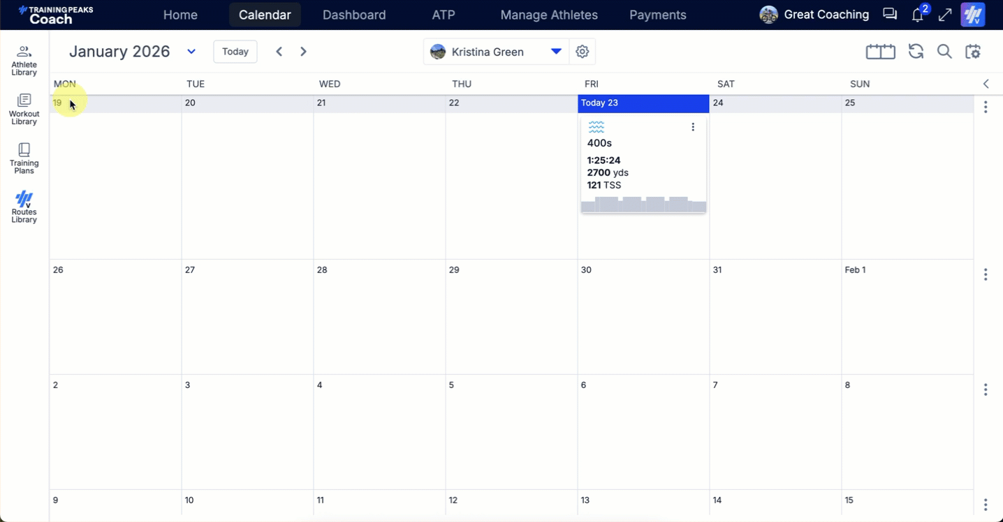 Open the Dual Calendar from the Athlete & Training Plan Libraries