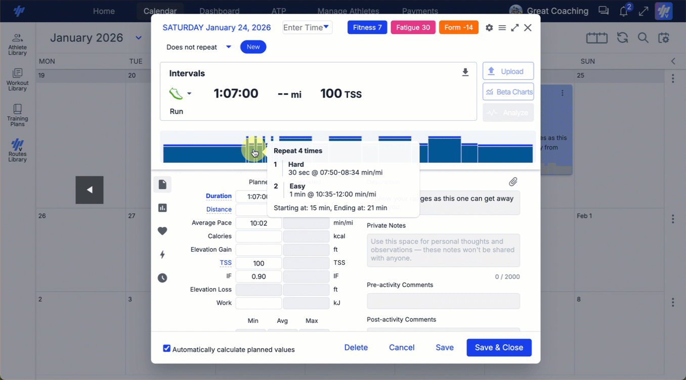 - Key S + Command (CMD) = save changes inside workout cards and within the Structured Workout Builder
