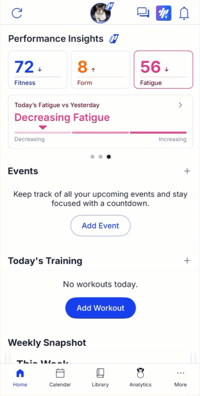 As a TrainingPeaks Premium Athlete, using the iOS mobile app, you now have powerful, at-a-glance insight into your training journey! The updated TrainingPeaks iOS mobile app features clear charts and trends for Fitness, Form, and Fatigue. Use these tools to track your progress, understand where your fitness is headed, and feel confident in your training plan. We also have more to come around Health Insights!