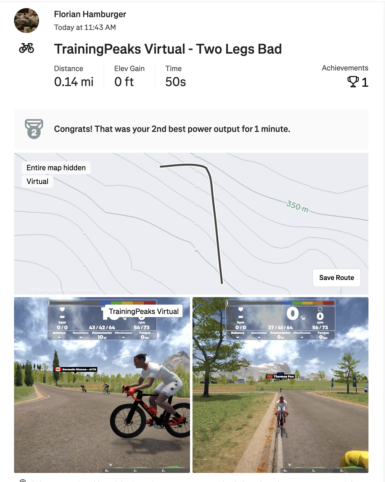 - After 1 to 2 minutes, you will then see your completed ride on your Strava account with the desired screenshots.